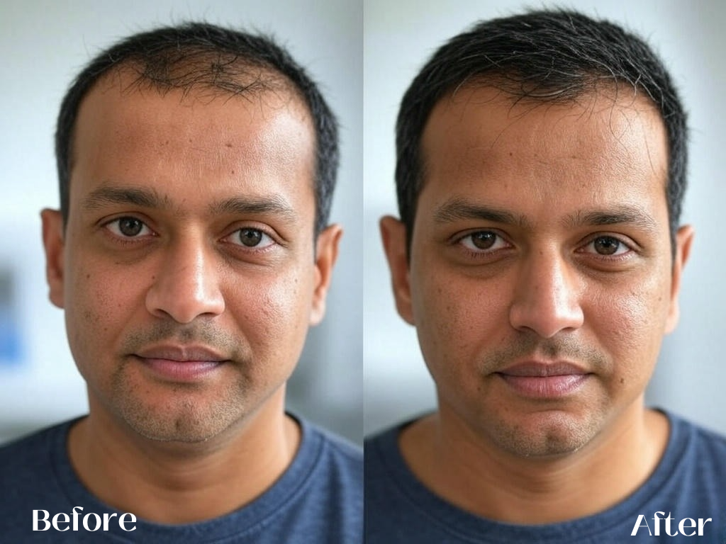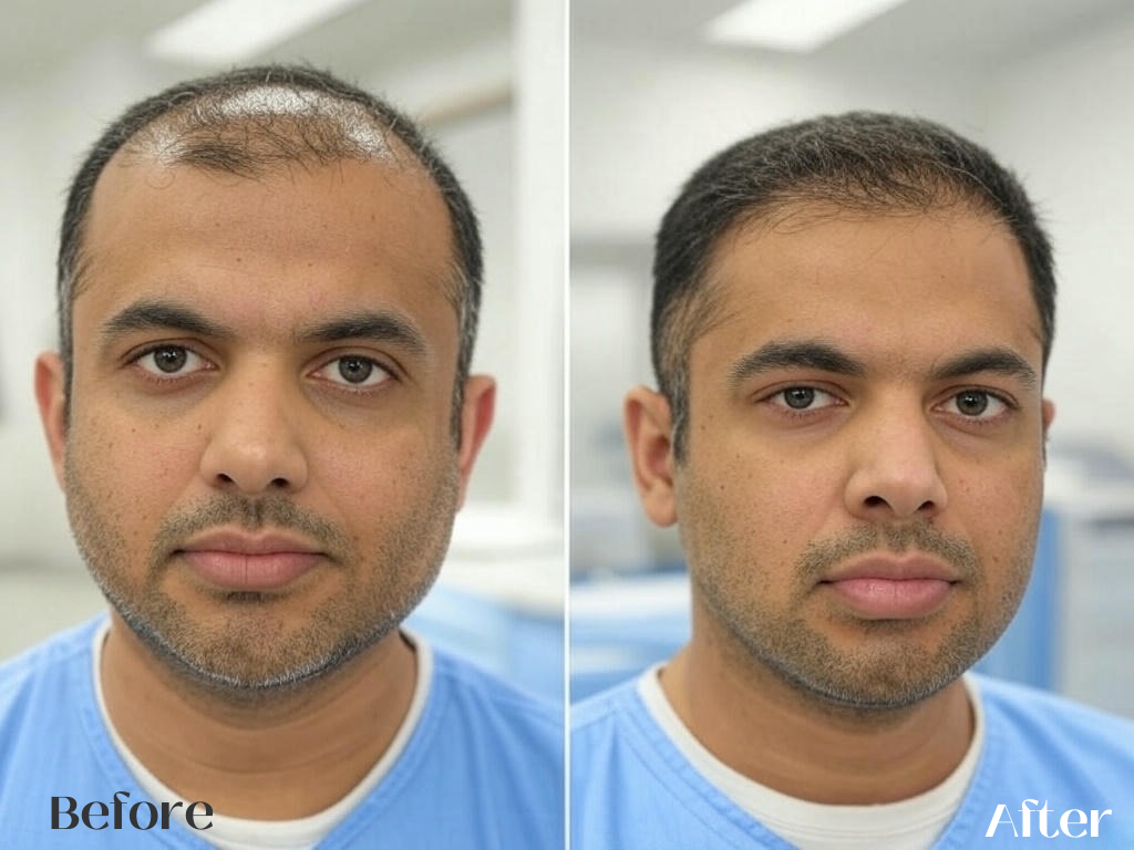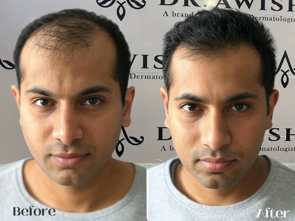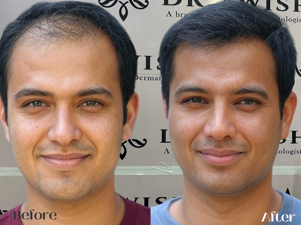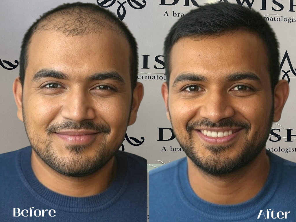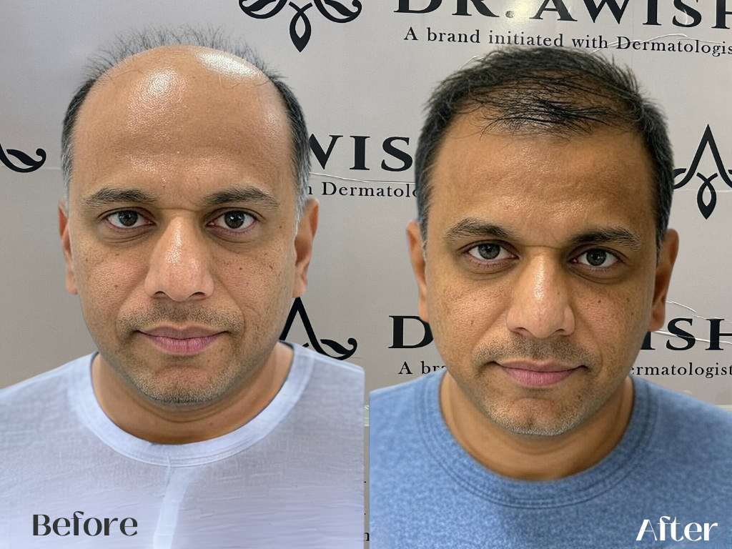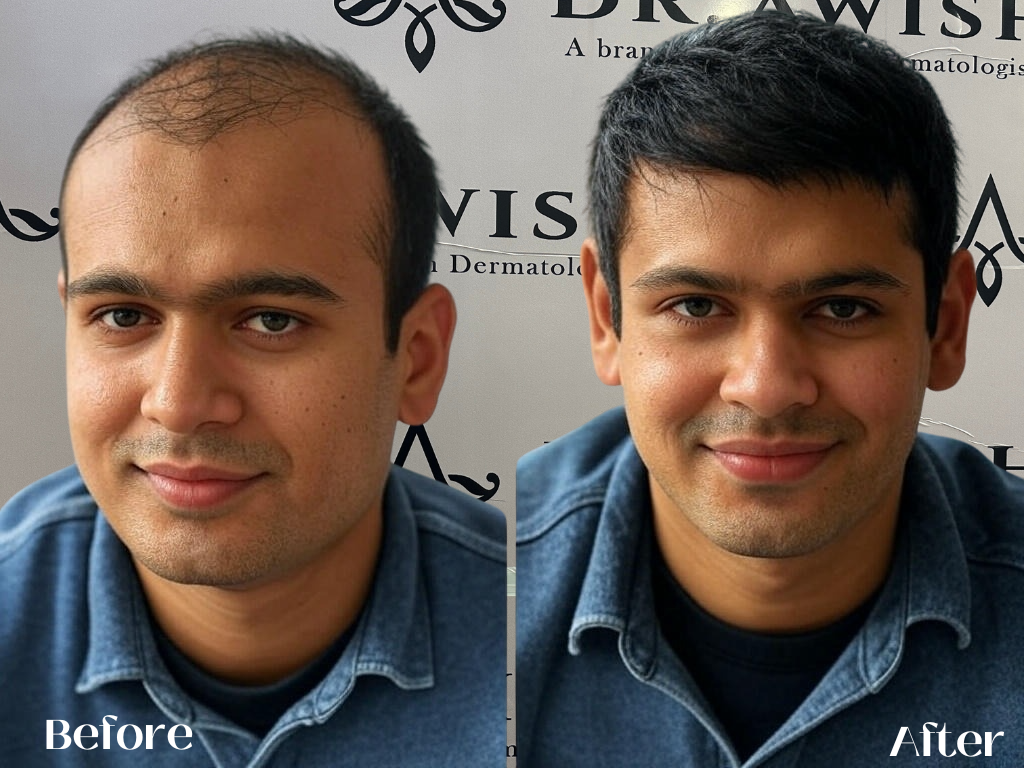 For non-surgical treatments, results may start appearing in 2–3 months. Hair transplant results take 6–12 months for full growth.